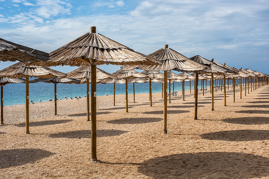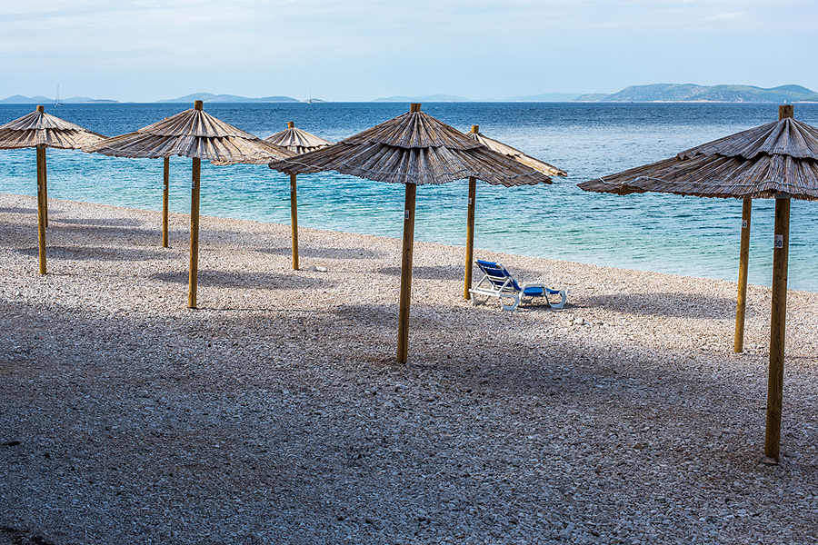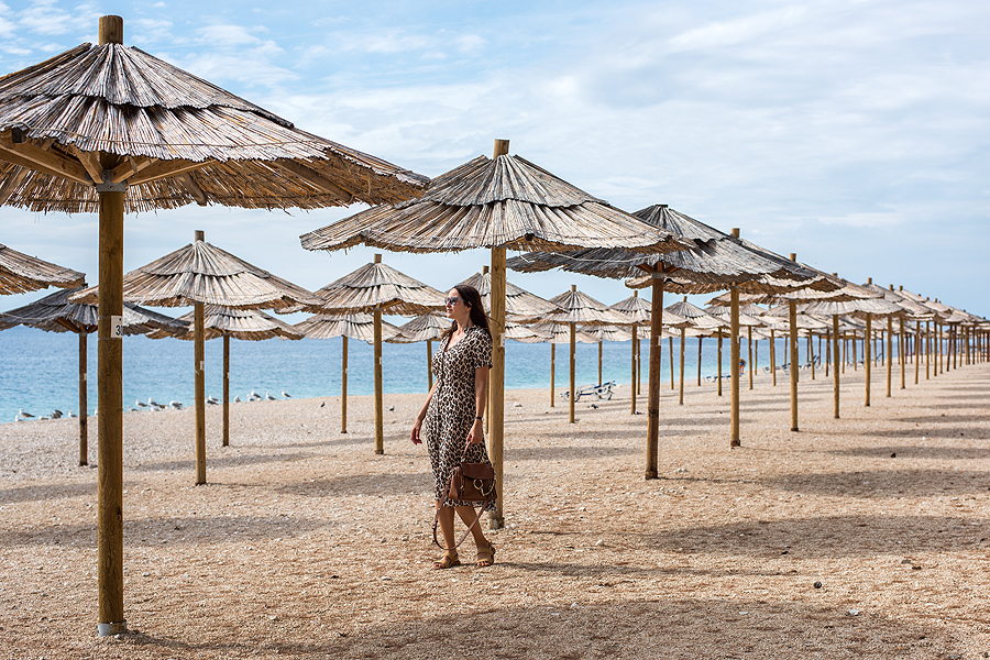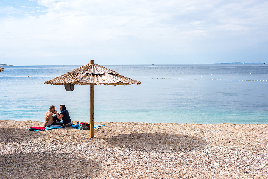 Nerealiai fotogeniški skėtukai žydros Adrijos jūros fone, saulė išlenda, džiaugiuos! Čia paplūdimys Raduca, iš Kroatijos topų.