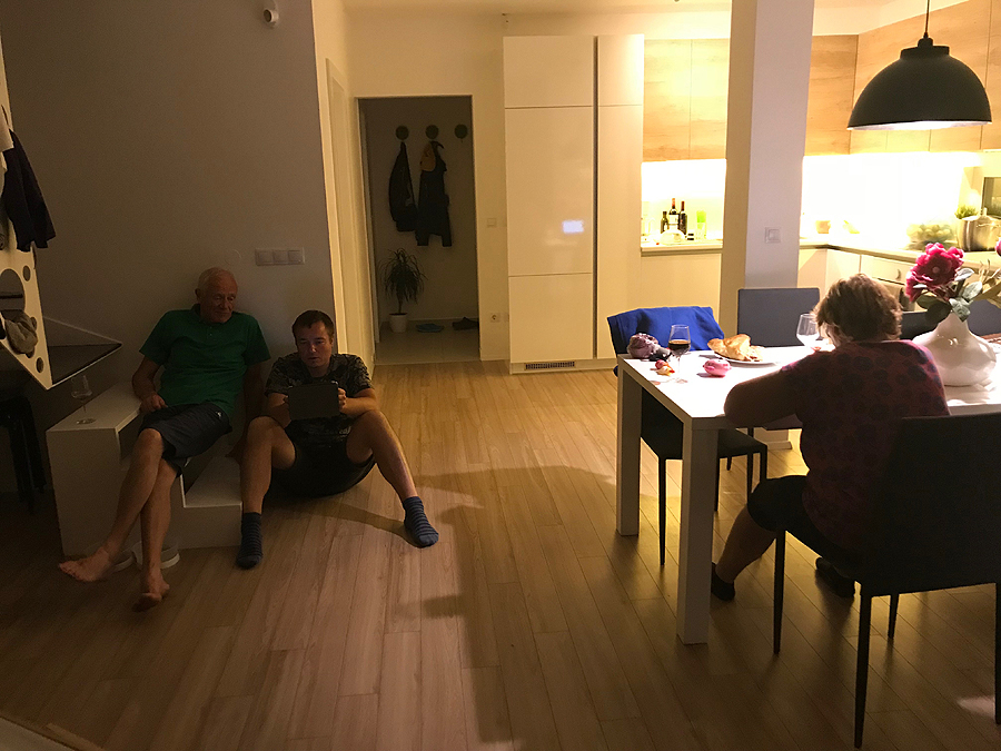 Butas senoviškam name, susižavim parketu, vaizdais pro langą, bet einant miegot nerandam baltų paklodžių pakankamai, čia jau didelis minusas, sakyčiau. Buto šeimininkas, befotkindamas mūsų pasus sako, aa, lietuviai - jūsų geri krepšininkai, mes gaunam į kaulus. Žinoma, vyras juokias, sako ne ne, tai mes nuo jūsiškių gaunam.