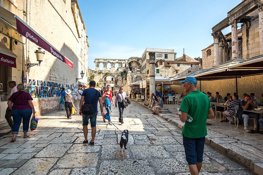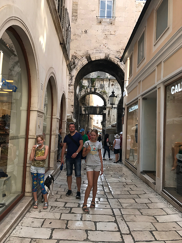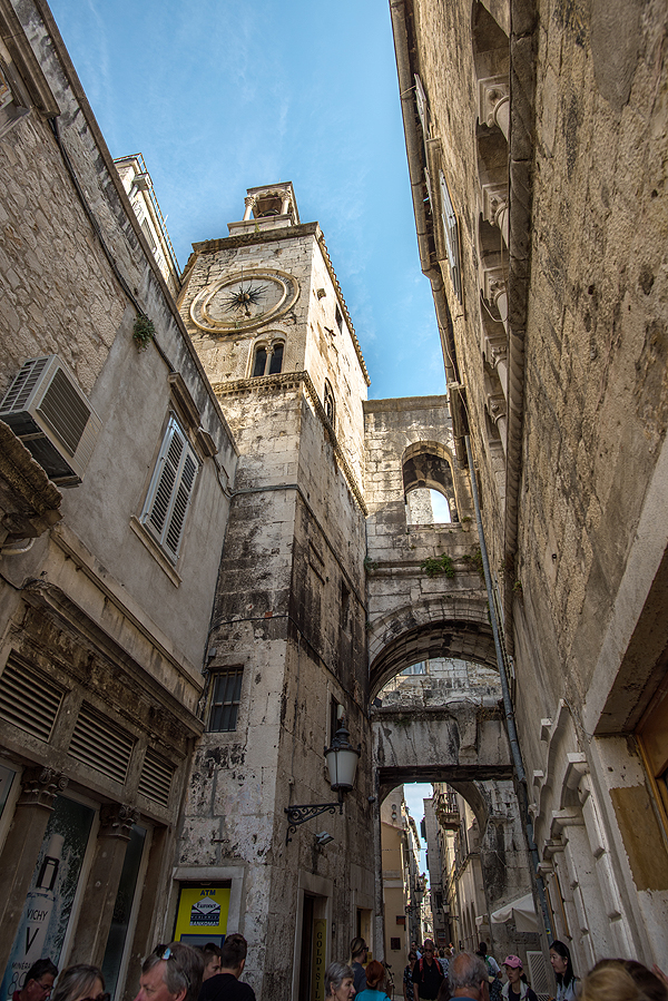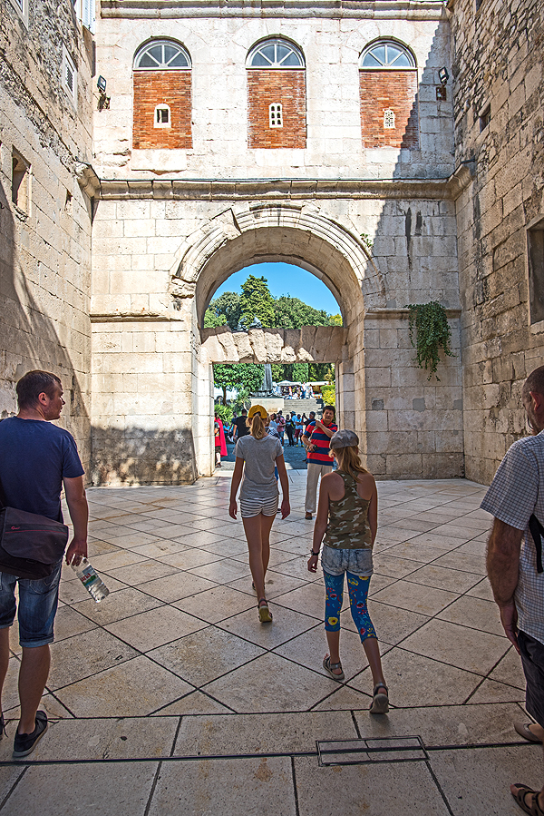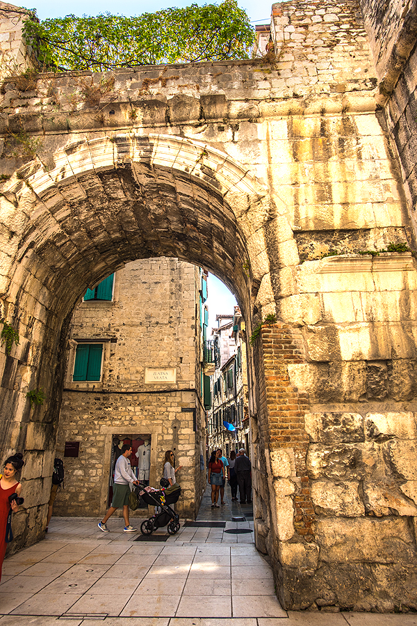 Visas senamiestis - Imperatoriaus Diokletiano rūmų liekanos. Čia Žalvariniai vartai - už jų turtingiausias rūmų fasadas.