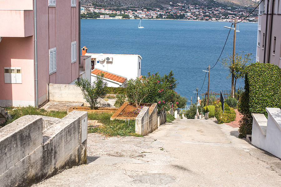 Maudytis randam rojaus įlankėlę šalia ... miestelio Okrug Donji. Čia gatvės miestelyje - stačiai stačiai į pat jūrą!