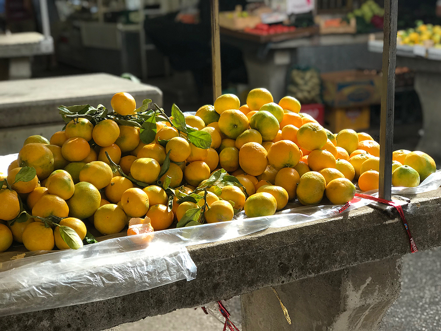 Pro sidabrinius vartus iš Diokletiano namų į turgelį. Labai fotogeniški man tie mandarinai.