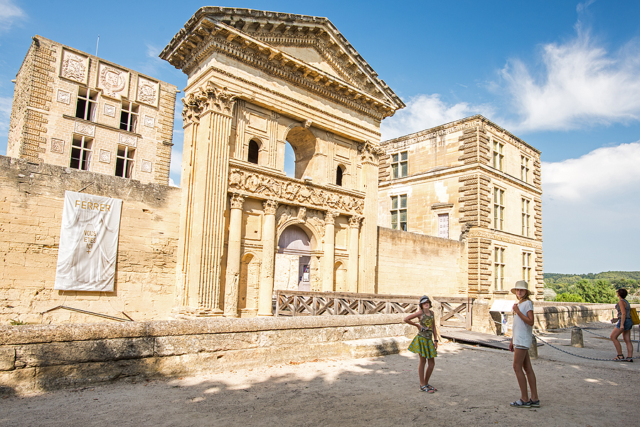 Renesanso stiliaus šato (chateau) La Tour d'Aigues paradinis įėjimas. Įdomu tai, kad miestelis turi viską, ko reikia dabar - net pora vidurinių mokyklų. Viduramžiais jis priklausė vienai šeimai, tada per santuoką kitai šeimai, vėliau užpuolimai ir epidemijos beveik išnaikino miestelį, kol naujasis pilies ir miestelio savininkas prijungė naujas aplinkines valdas.