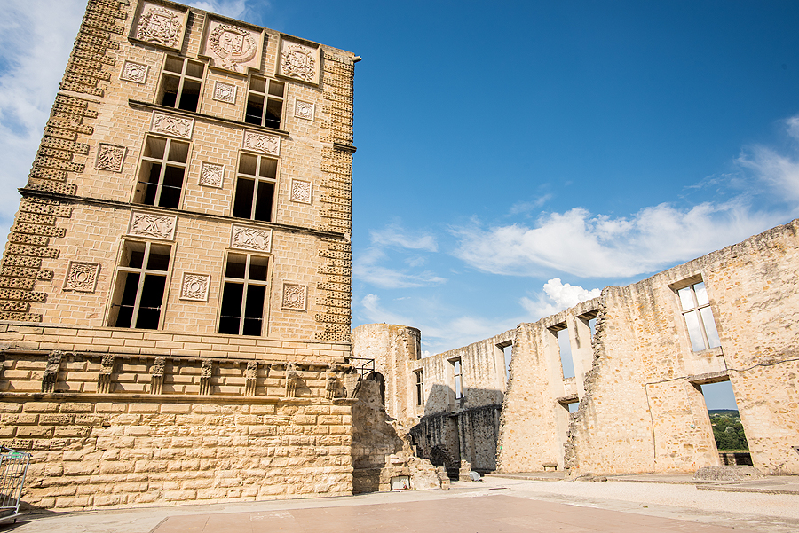 Artėjame prie 16-ame amžiuje statytos pilies griuvėsių. Ji buvo apgadinta Prancūzijos revoliucijos metu 1789-1794, bet iš dalies rekonstruota.