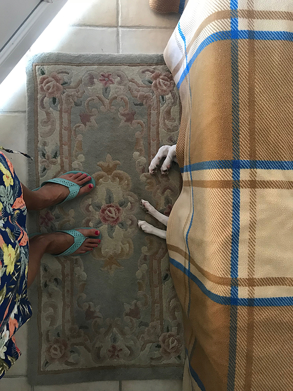 Mūsų gyvuliukas ištiesė kanopėles po lova - gelbėjasi nuo vidurdienio karščio.