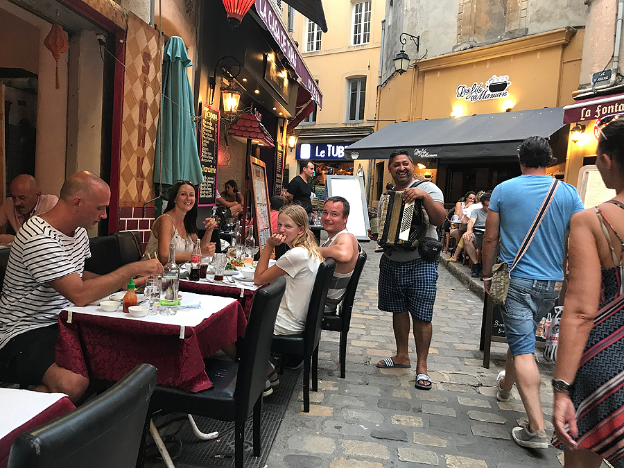 Mėgstu fotkint gatvės dainininkus - jie visad pozuoja, žino, gaus pinigų. Nuotaika puiki, tad jam nepagailim. Šalia sėdintis vyriškis man gryn iš Marselio jūrininkas.
