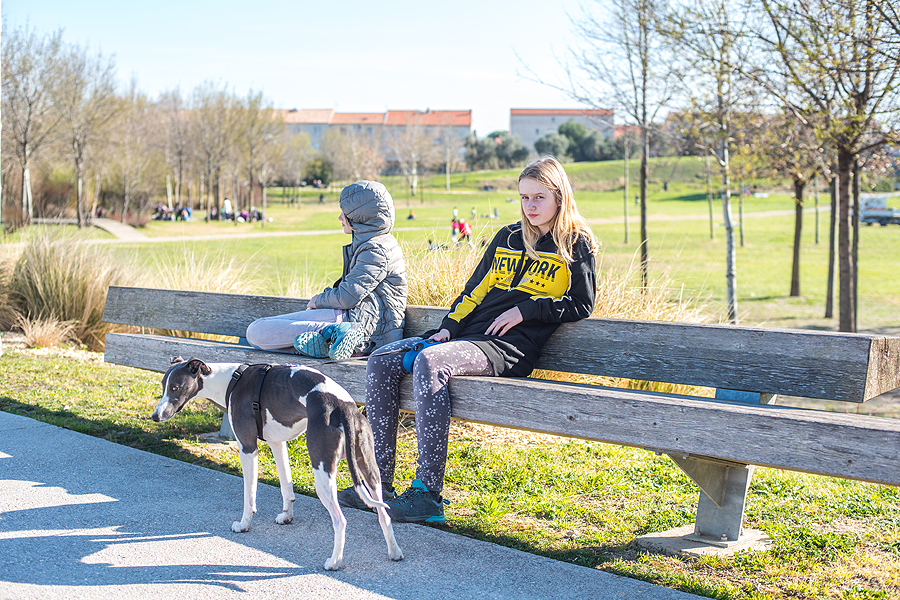Stojam Perpignan - vyrui reikia valandą kalbėt telefonu, o mes neriam į parką. Oras šiltas, tad žmonių nemažai, piknikauja, važinėja dviračiais, žaidžia futbolą.