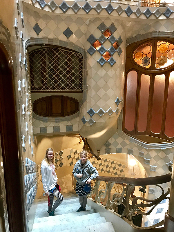 Norėtųsi pabūti, neskubėti, padrybsoti, kaip kiti, bet reikia lėkt - 15 val įėjimas į Battlo namą. Nepatinka man tie tikslūs laikai lankomų objektų Ispanijoje... Galvoju, kaip važiuoti, metro paprasčiausia, bet vaikam pažadėtas tuktuk pasivažinėjimas - būtų gera proga. Sakau - jei ne daugiau 30eu, tada važiuosim. Ir ką - su didele ir ypatinga specialiai mums nuolaida kaina 30 eu :) važiuojam. Smagu lėkt ir dairytis, daug kasyčių susipynusi tamsiaodė mergina mina ir per lankomas vietas, nors sakiau - mums reikia taksi, o ne spoksot į aplinką.