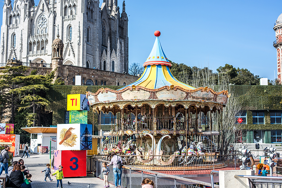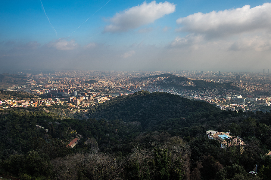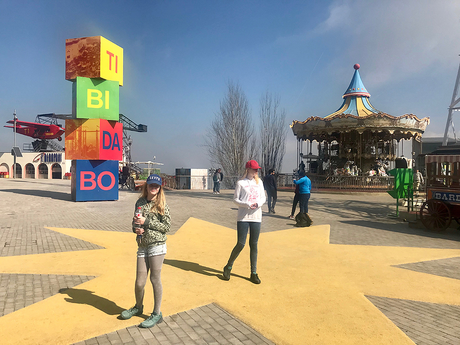 Laiko gaišimas visas rytas, funikulierius į Tibidabo nedirba, laukiam pusvalandį autobuso, kuris veš į kalną, tada sukam ilgąąą didelį ratą serpantinais... Bilietas į apžvalgos aikštelę galioja ir užkėlimui į patį parką, ar autobusu, ar funikulieriumi, į tai įeina kievienam vienas pasisupimas ant visų penkių ten esančių atrakcionų. Atrakcionų parko atidarymas rytoj, kovo 2 dieną, bet mes to specialiai vengėm, bijojom žmonių spūsčių.