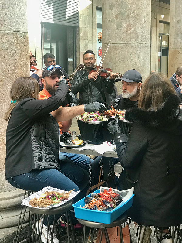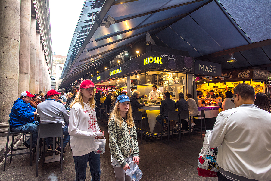 Kadangi esame La Rambla gatvėje, bandau privilioti vaikus užkąst turguje Mercat de la Boqueria. Deja, sulaukiu organizuoto pasipriešinimo.