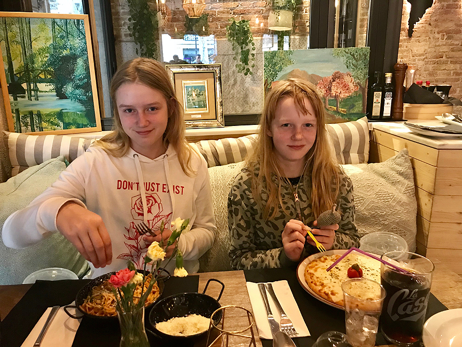 Einam valgyt vakarienės. Sitges aplink uostą daug bariukų restoraniukų, visi pustuščiai, nors matosi nemažai žmonių ir visos užeigos dirba. Su šunimi į vidų picerijos su staltiesėm neprisiima, tenka sėdėt lauke kartu su rūkančiais. Visi pikti, vaikai burba, vyras nervinas. Kol neatneša valgių ir gėrimų. Vakaras baigias linksmais juokavimais, krentam į lovas.