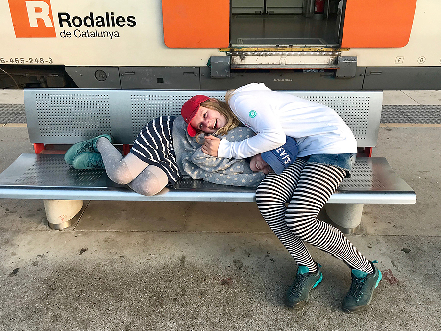 Keliaujam trise su vaikais į Barseloną, vyras dirba "iš namų" kartu su Ogiu. Perkam traukinio bilietus pirmyn atgal į Barselonos Estacio de Sants traukinio sustojimą. Keltas į Montžuko kalną kylą iš metro sustojimo Paralel - yra nupaišytas keltuvo ženklas. Kitaip, nei Šveicarijoje, čia traukinio ir metro bilietai ne tie patys. Metro perkam atskirą kortelę, 10 pravažiavimų 10eu su kapeikom. Vaikams nuolaidos tik iki kūdikinio amžiaus, lyg nuo 4m reikia bileto kaip suaugusiam.