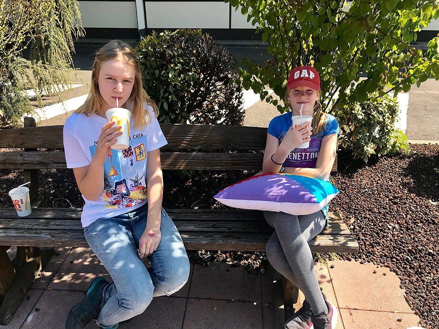 400 km iki tikslo. Važiuojant šaukiu mašinos galui - "vaikai! Kokia pilis ant kalno!" Miglė, pakėlusi akis nuo planšetės, - "bet čia net MC Donaldo nėra"...