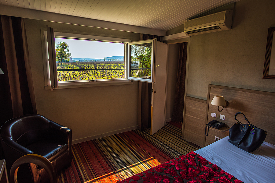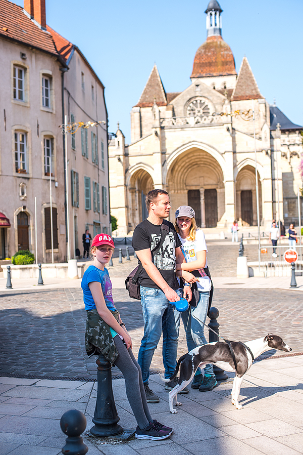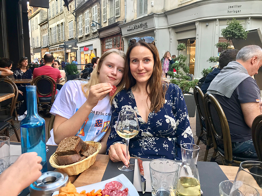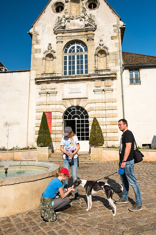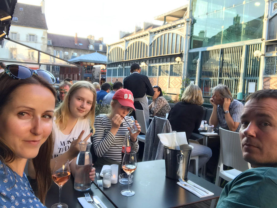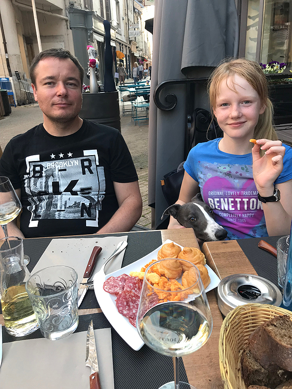 Atvažiuojam į Beaume (liet. Bonas) - savo laikinų namų vietą. Viešbutukas Kyriad Prestige Beaune le Panorama paprastas, šalia kelio, mūsų prioritetas - gera vieta, šuniui palakstyt erdvė ir keli atskiri kambariai mums ir vaikams. Pusryčiai normalūs, bet antrą rytą jau nebevalgom čia - kasdien vis tas pats atsibosta.