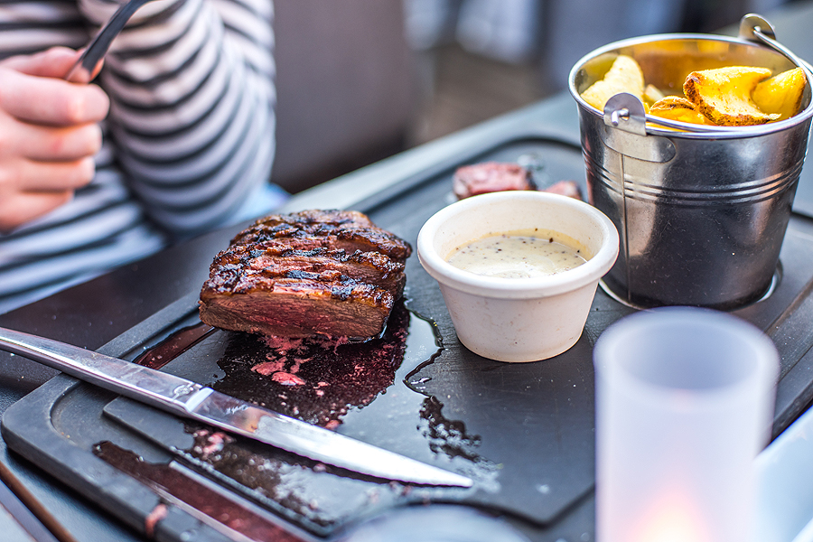 Vakarienę valgom šalia turgaus, Grill & Cow viskas šiaip sau, išskyrus vyną ir nerealiai minkštą ir sultingą antieną ir kiaulieną. Net Ogiui nelieka. Tenka vargšiukui tenkintis bandele.