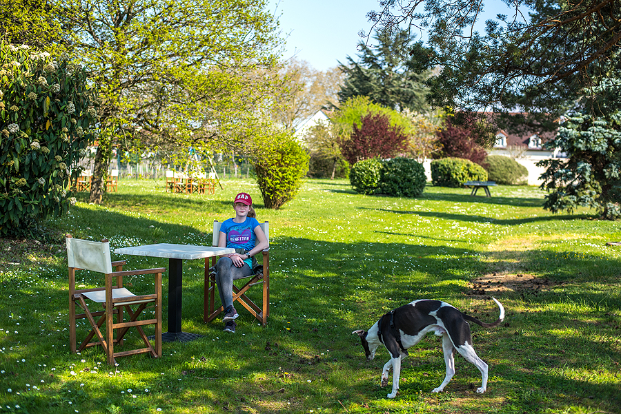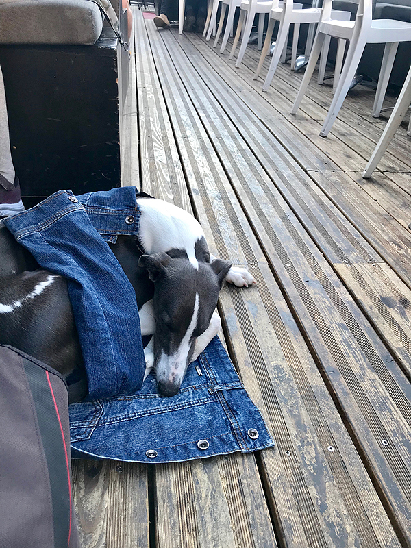 Prisėdam kavinukėje, vaikus ir šunį paliekam ant suoliuko šiam parkely valgyti ledų. Padavėja kalba kažką, nieko nesuprantu. Klausiu, ar kalbate angliškai. Padavėja, pagyvenusi moteriškė, net nesiteikia atsakyti - tipiška prancūzė. Klausiu, ar turite Aperol Spritz. Neturi, bet pasiūlo kitą gėrimą - kalba apie Casis, suprantu, kad vyšnių kažkas bus, ok. Atneša šaltą kažkuom skiestą vyšnių likerį - skamba baisiai, bet buvo visai geriamas. Creme de Cassis. Pradėjau mokytis prancūzų per Duolingo progamėlę, kitąkart galėsiu išbandyt žinias.