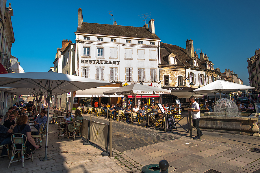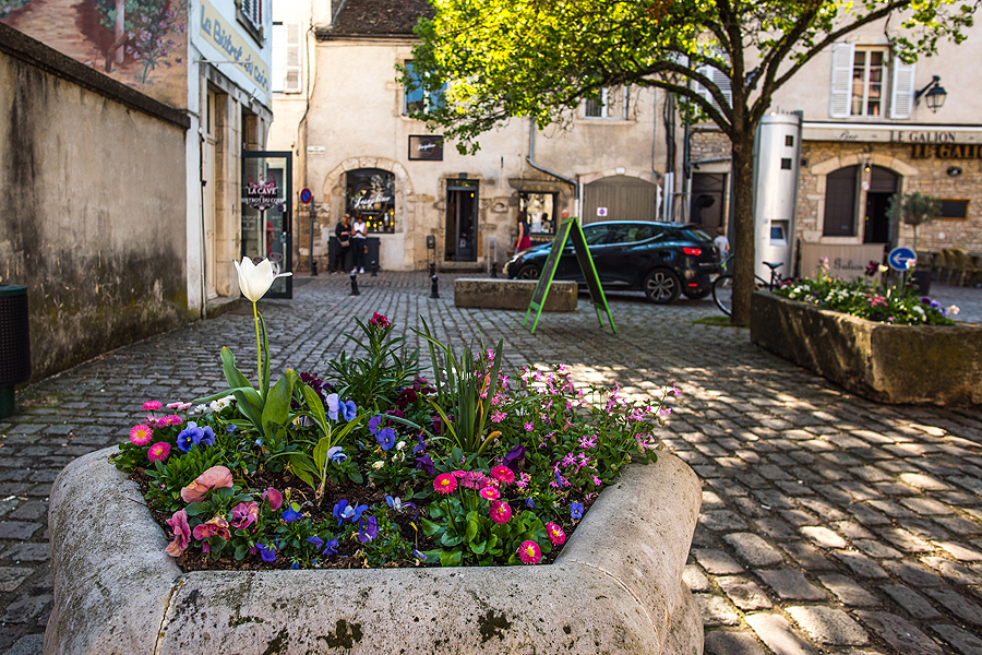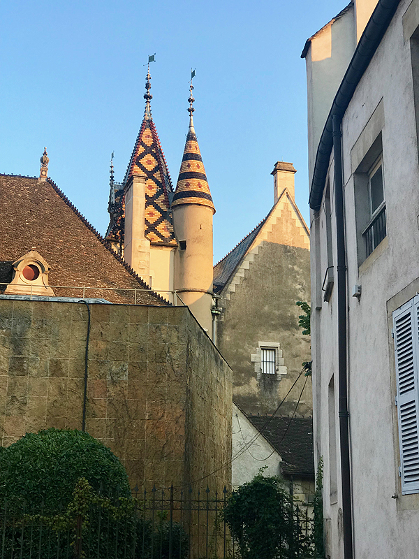Beaune mums patinka - mažas ramus miestelis, Burgundijos vynuogynų sostinė, su parkais, gražiais namais, spalvoti, geometrinių raštų plytelių stogai, apželdinti namų fasadai, gėlynai, daug bariukų.