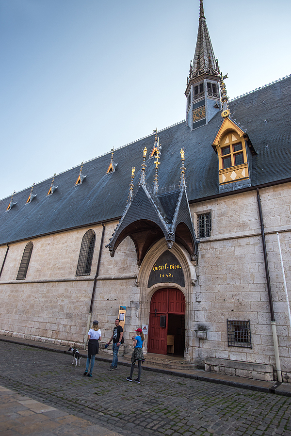 Čia muziejus, į kurį, deja, neužėjome, viduje labai gražus kiemelis su tais geometrinėm formom išmargintais stogais. Anksčiau čia buvo neturtingųjų ligoninė, kurią 1443m. įkūrė Burgundijos kancleris. Dabar čia - Burgundijos vynų muziejus. Įėjimas 8eu, bet, gaila, neužeinam. Visi alkani, nesuinteresuoti.