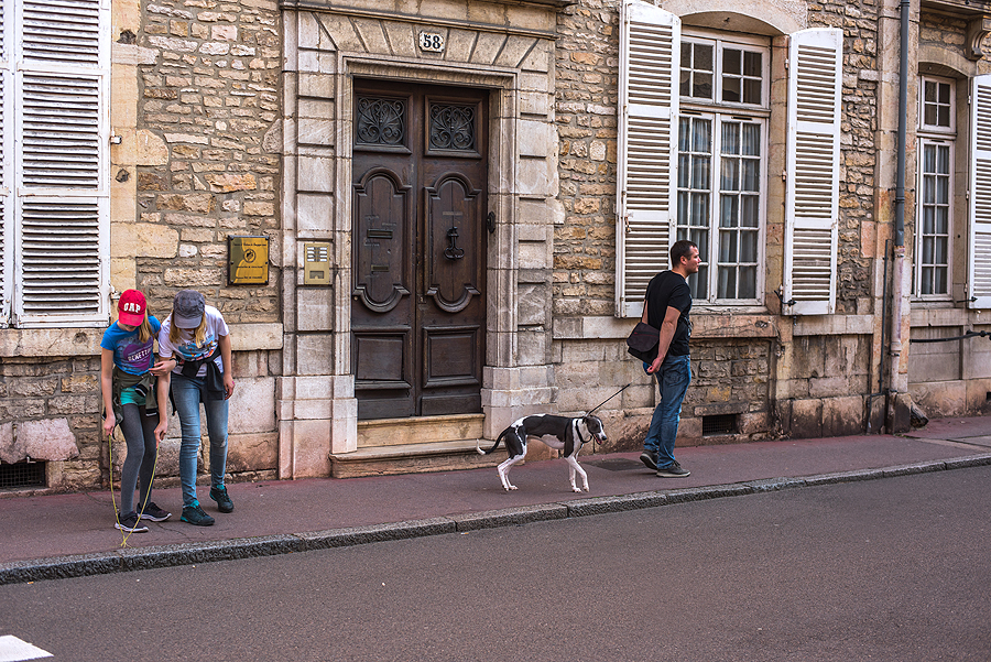 Grįžę į viešbutį, imam vaikus, šunį ir einam į miesteliuką Beaume apsidairyti ir paieškoti vakarienės.