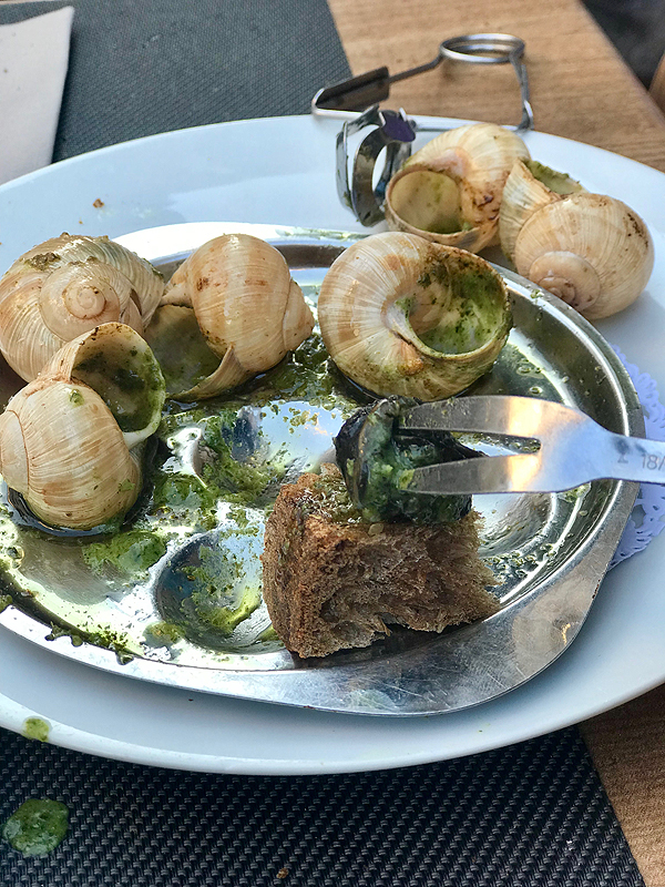 Tradicinis Burgundijos užkandis - sviestu ir žolelėmis įdarytos sraigės, skanumynas.