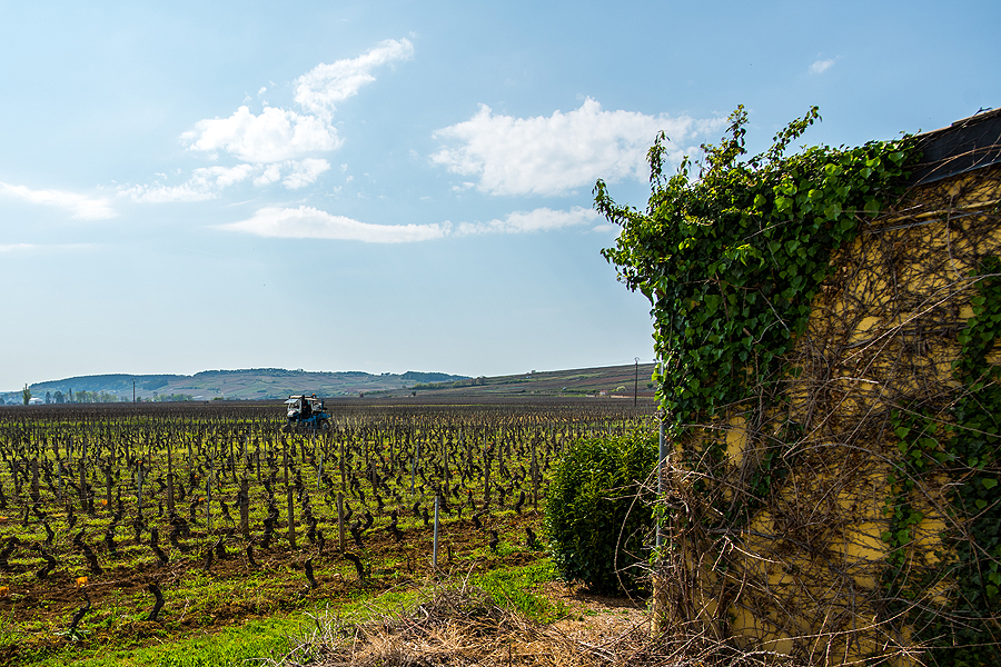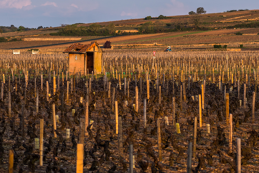 Žmonių nėr, pravažiuoja vos viena kita mašina, saulė teka, jau šilta. Pafotkinu tai, į ką vakar varvinau seilę, važiuojant į Pommard. Šis apkiužęs namiokas jau vakar krito į akį, turiu!