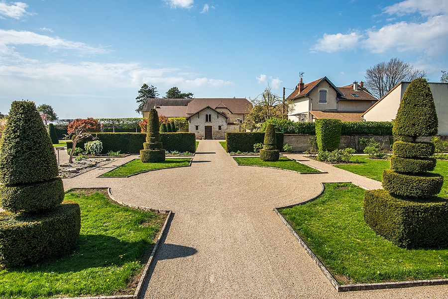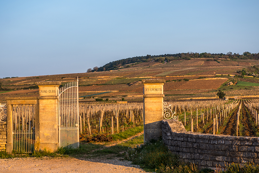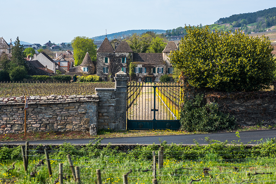 Ir įspūdingi vartai į vynuogyną šalia Pommard.