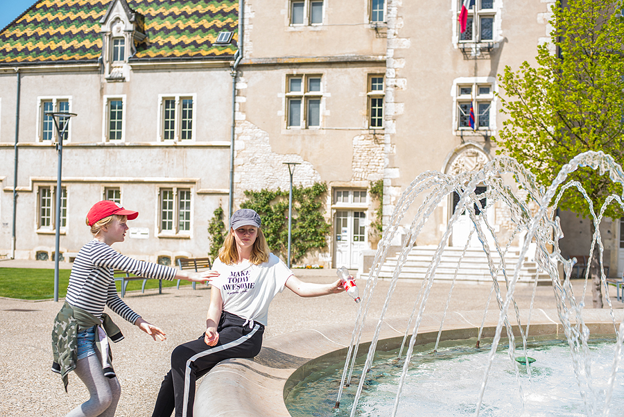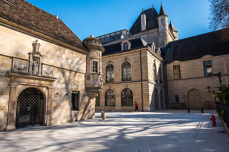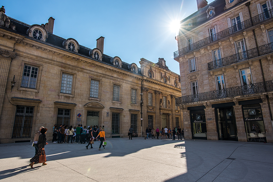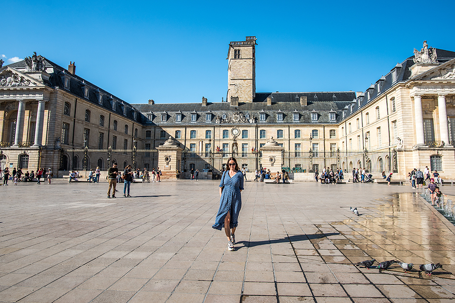 Už mano nugaros - milžiniški Burgundijos kunigaikščių rūmai, besijungiantys su Laisvės aikšte
