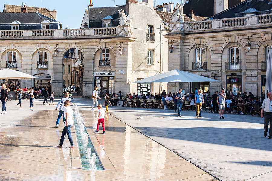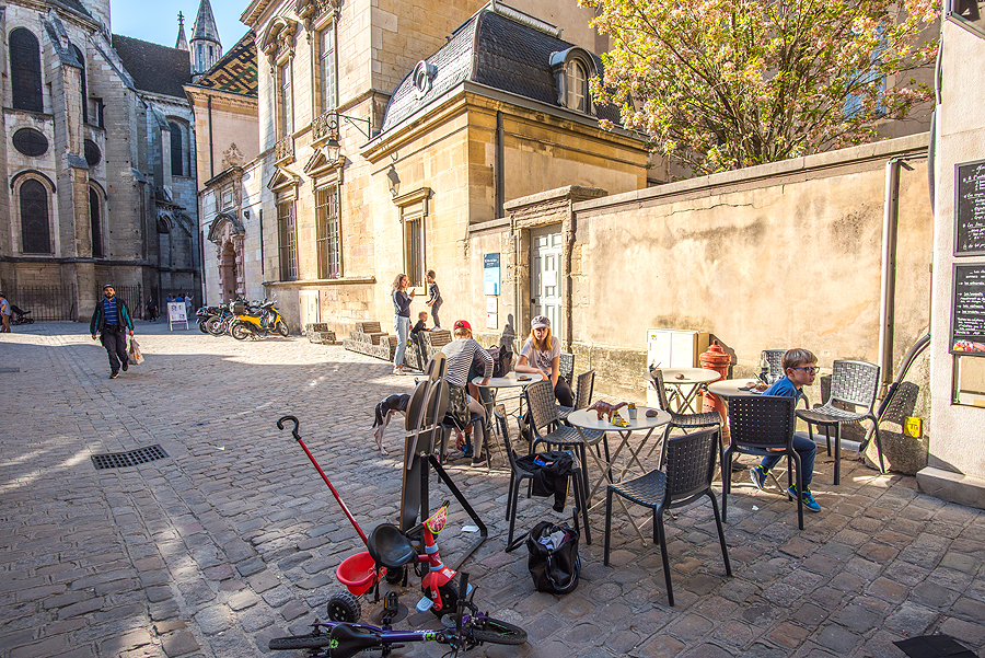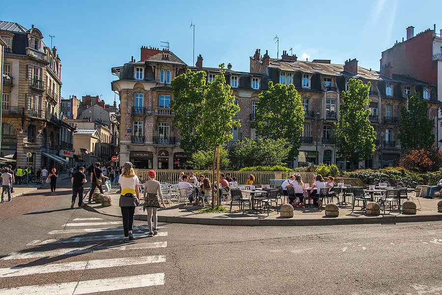 Didžiulė saulėta aikštė Place de la Liberation, pilna bariukų, noriu čia sėst, bet deja, vietos nėra... slenkam toliau.