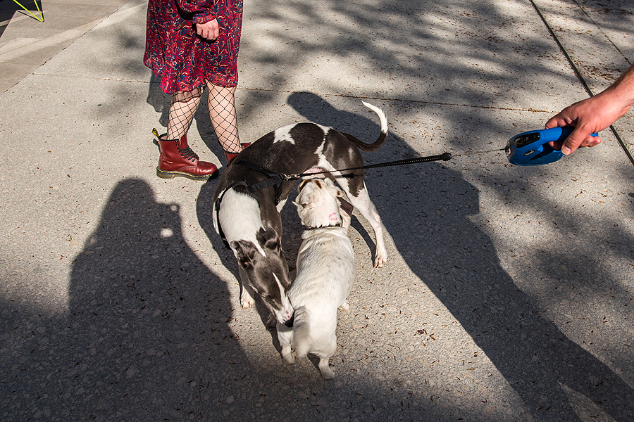 Tada trumpam tėtį išleidžiam į batų parduotuves, o patys laukiam... Pro šalį praeina žymiosios geltonosios liemenės, protestuotojai, su alaus buteliais rankose - girdėjom, kaip šūkavo anksčiau kažkur mieste.