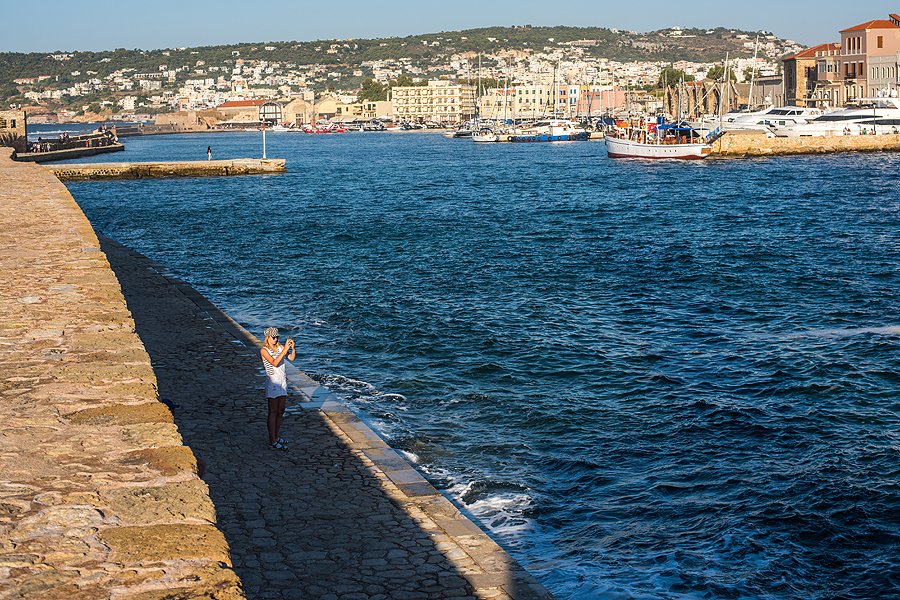 Vaizdai labai gražūs, einant molu - iš vienos pusės Chanijos venecijietiška pakrantė, tiesiai bokštas, o dešiniau jūra...