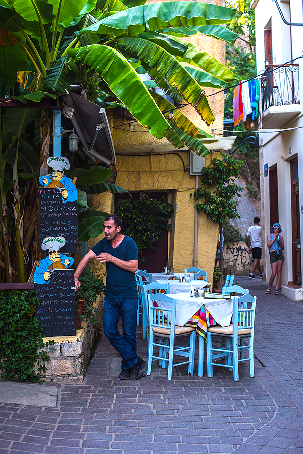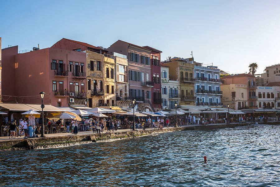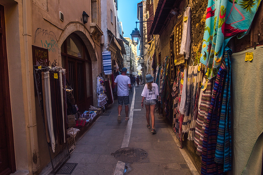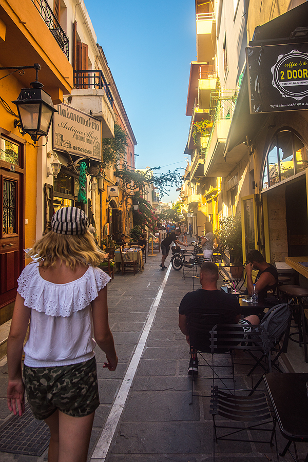 Vakarop - į Chania. Nuo 1209 iki 1669 metų Chania priklausė Venecijai, pažiūrėjus į spalvotus namukus tas akivaizdu. Žinoma, apie turkų valdymą liudija mečetė.