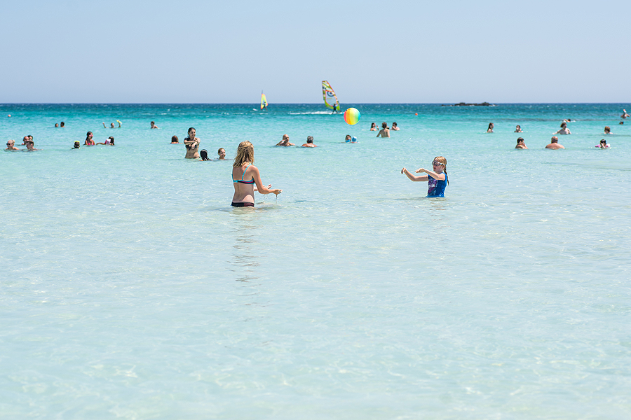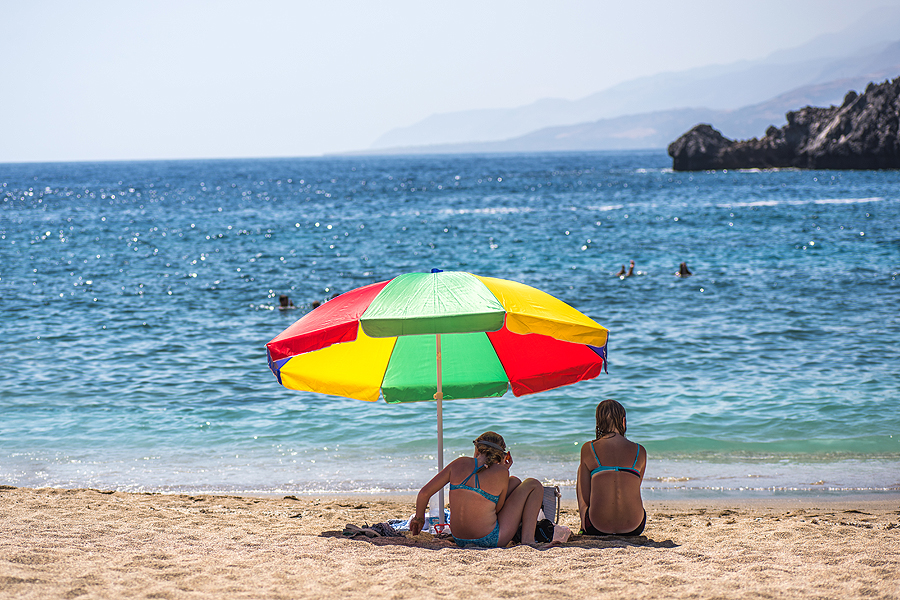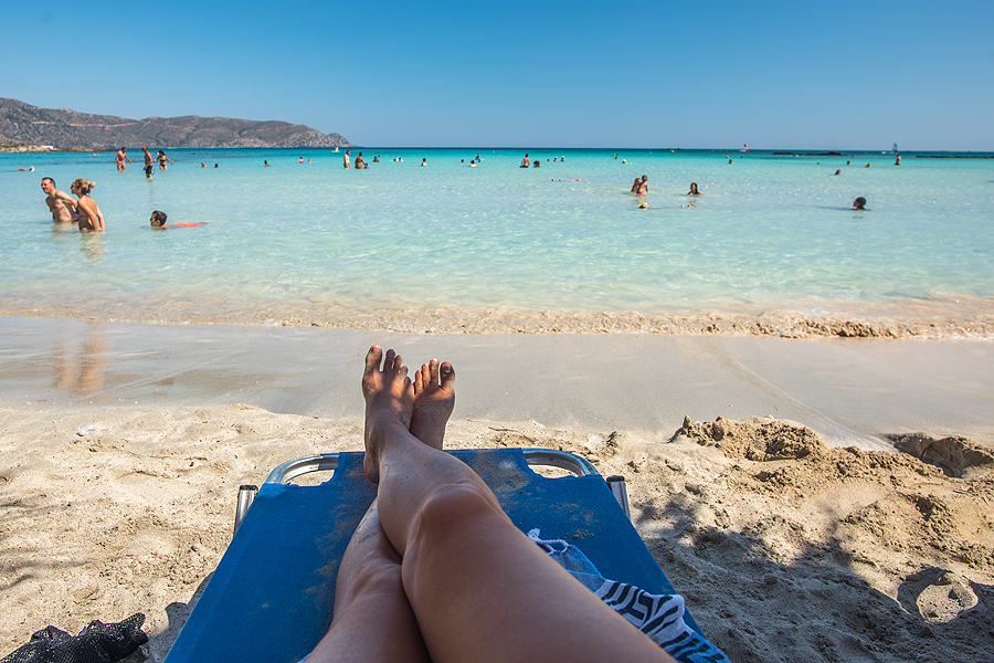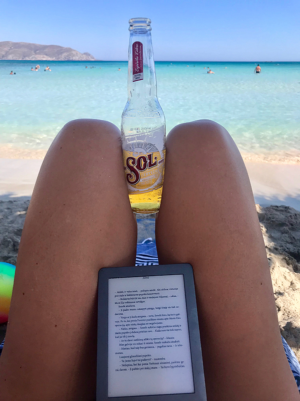 Paplūdimys puikiai privažiuojamas, tad žmonių netrūksta. Mokam už du gultus ir skėtį, vėl šeima į vandenį, aš ant gulto budėt.