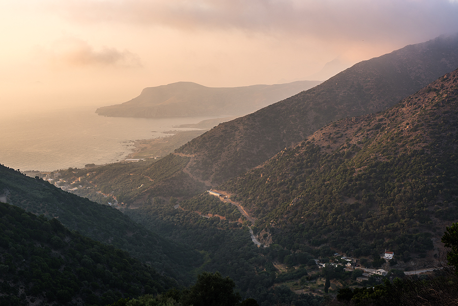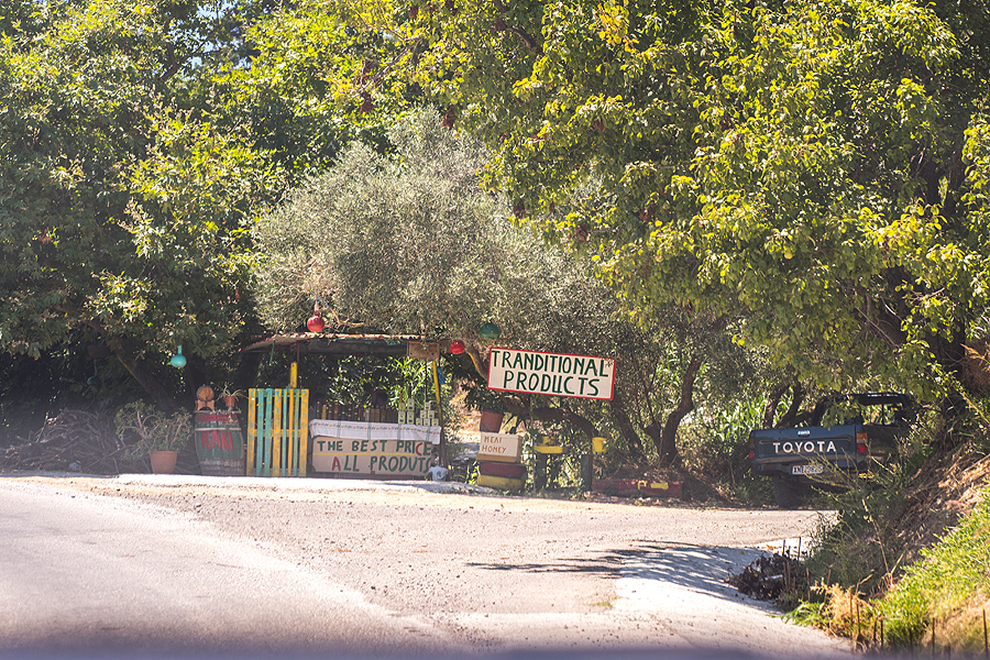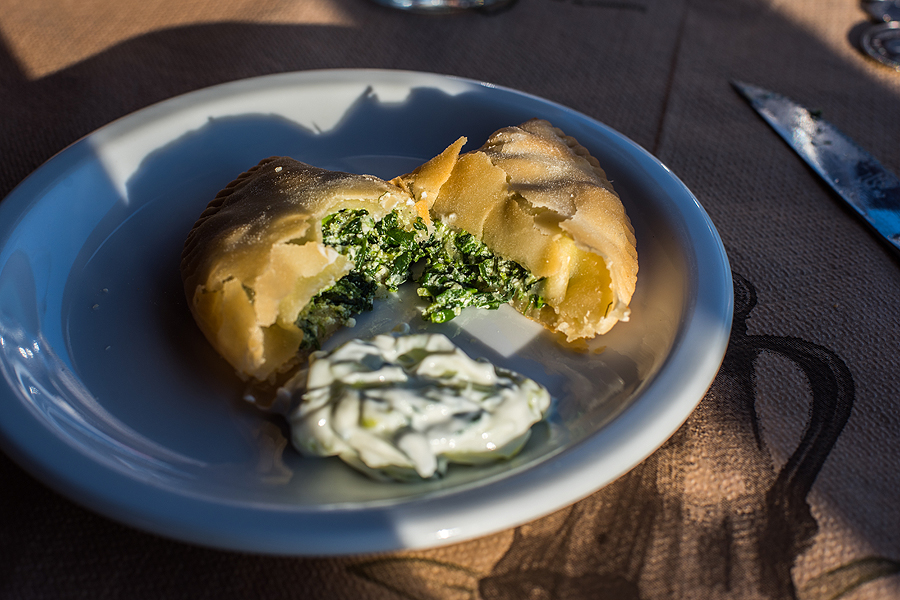 Beldžiamės šunkeliu link Sunset tavernos. Skaičiau vienam bloge, kad ten labai skaniai pavalgė vienas toks su šeima, tad reik ir man. Keliukas įspūdingas, vingiuojame serpantinais šalia jūros link to pat Kissamos. Ten paragauju tirpstančių burnoj pyragėlių su špinatų ir varškės įdaru plius mano mylimas tzatziki. Čia jis ne tobulas, trūksta kažko. Bet vaizdai į slėnį puikūs.