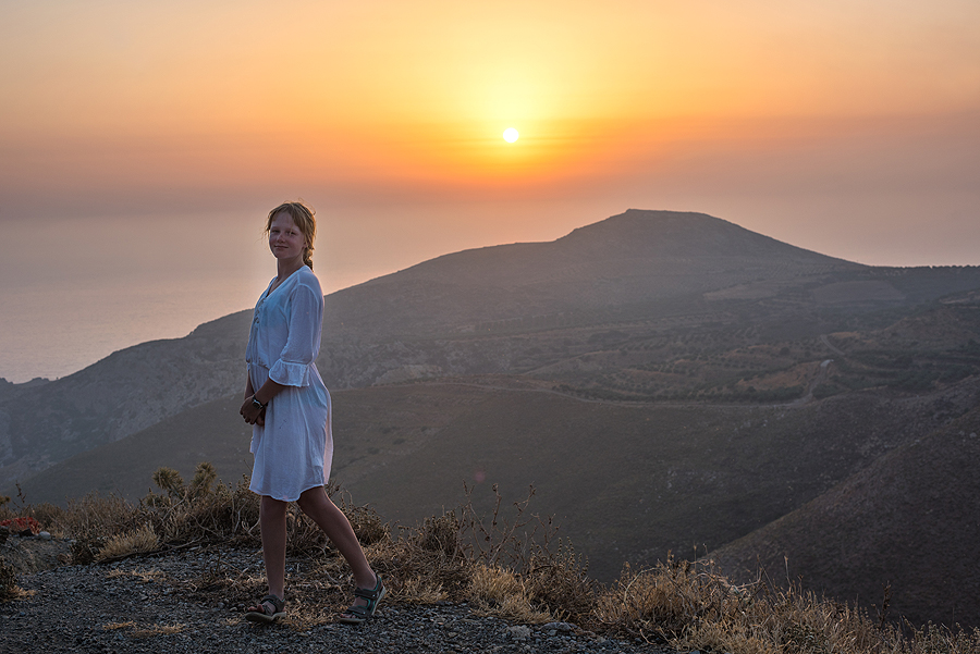 Taip norėjau palydėti saulę kur nors Kretoje, kokiame miestelyje gal, vyras sako, kad ji leidžiasi ne ten, kur mes apsistoję ir kur būnam vakare, ir tikrai, o būtent dabar važiuojame ta puse salos, kur ji leidžiasi, jėėė.