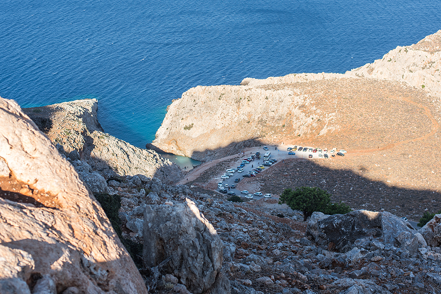 Po vienuolyno priprašiau vyro dar prasukti pro pliažiuką, jis matosi nuotraukoje, bet pavėlavome, nes saulė jau žemiau, jokio vandens žydrumo nebesimato... O jis labai įspūdingas, pagūglinkit Seitan limania beach.