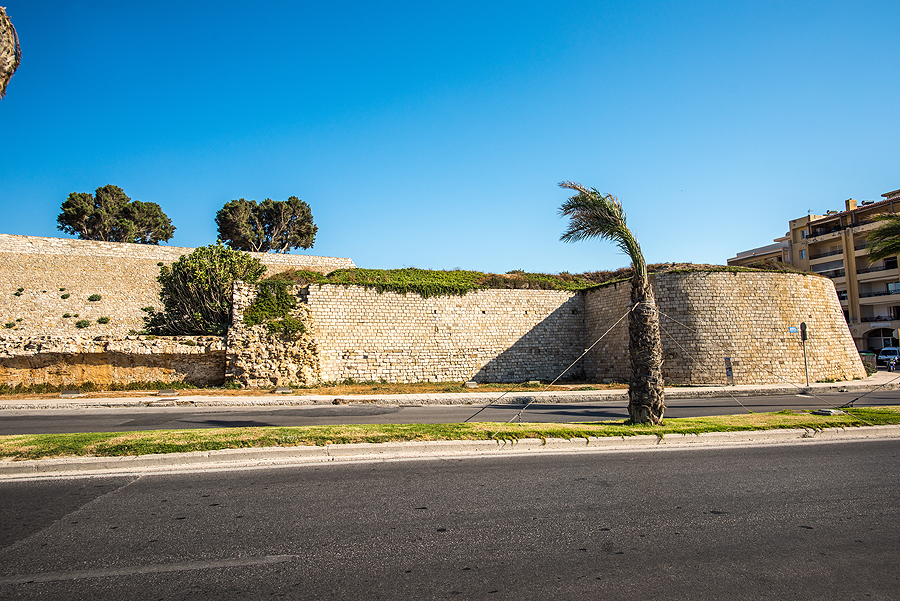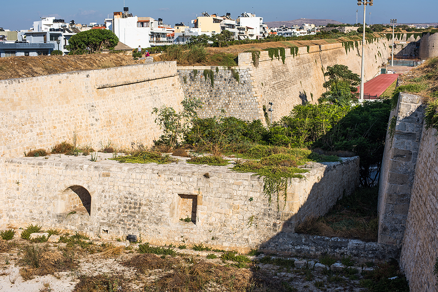 Štai matosi jau venecijiečių statyta miesto apsauginė siena, kaip rašo, 40m pločio.