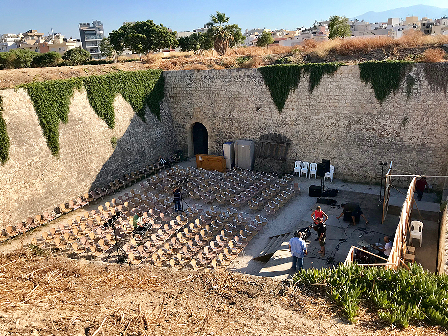 Pamačius, kad yra ką pamatyt, atvelku ir vaikus - tegu susipažįsta su senovės architektūra. Odeonas, čia saugoma didžiausia Gortynos vertybė: akmenyje dorėniniu senosios graikų kalbos dialektu iškaltų antikos įstatymų sąvadas.