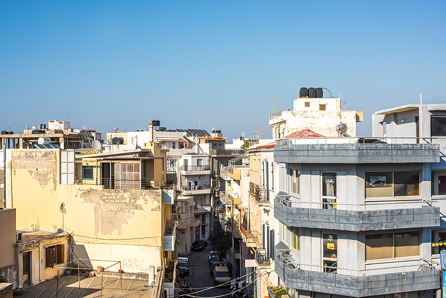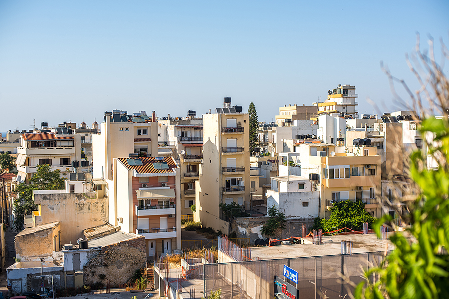 Nuo sienos matyti miesto namai, na, nenorėčiau gyvent Heraklione... Dėžučių kratinys toks.