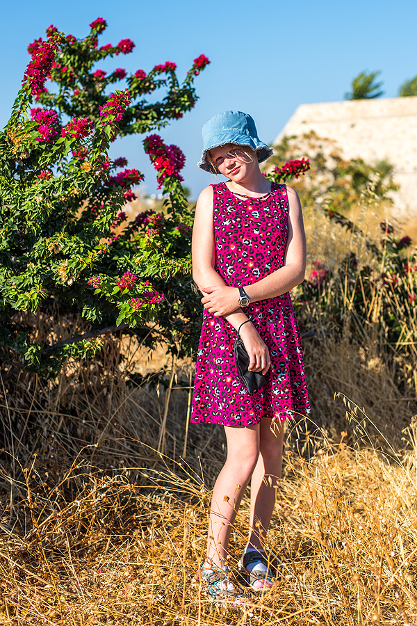 Mažės suknelę vėjas pučia, atrodo lyg virvute laikytų.