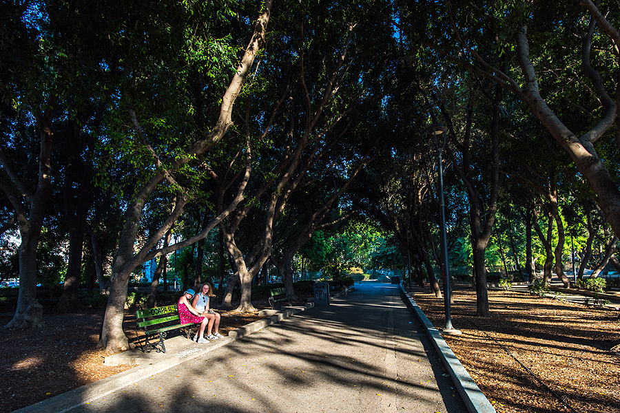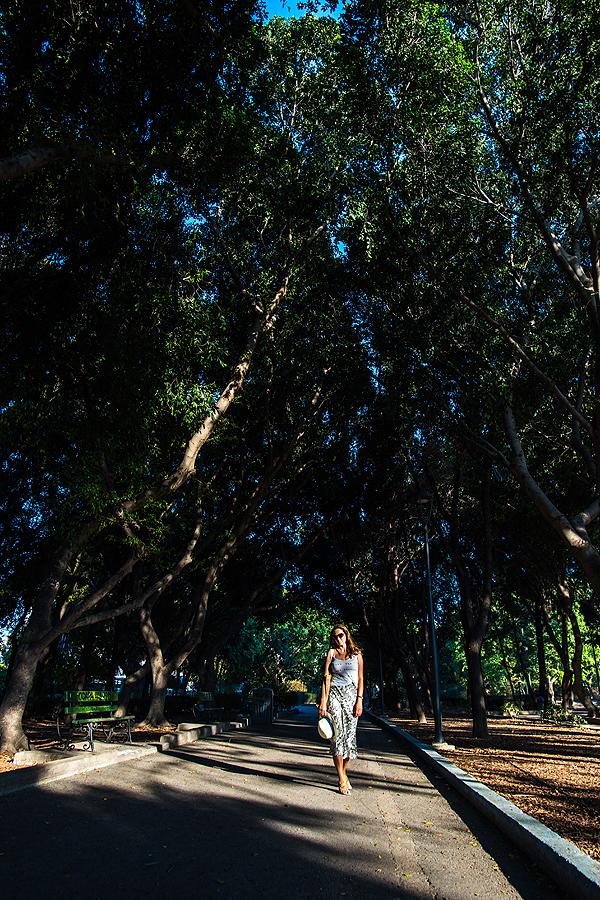 Apsukam ratą aplink senamiestį gynybine siena, leidžiamės žemyn į parkelį. Aukšti medžiai, pavėsis, nesinori išeiti.