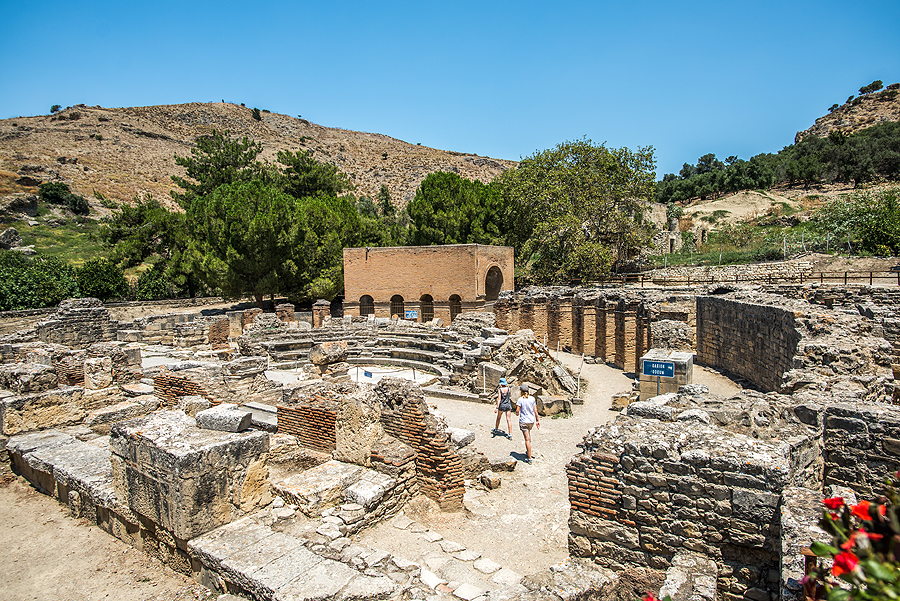 Štai mes ir Gortynoje - daugiau nei 6000 metų skaičiuojančiame mieste, kurį mini Platonas, Homeras. 68m. pr. m. e. miestas ypač suklestėjo, nes buvo prijungtas prie Romos imperijos, miestas tapo salos sostine, politiniu ir kultūriniu centru. Italijos archeologų mokykla kasinėja vietovę nuo 1884m ir tęsia iki šiol, nes miesto teritorija milžiniška. Lankytojams atidarytas tik mažas gabalėlis aplink nuotraukoje matomą šv. Tito baziliką ir odeono likučius.