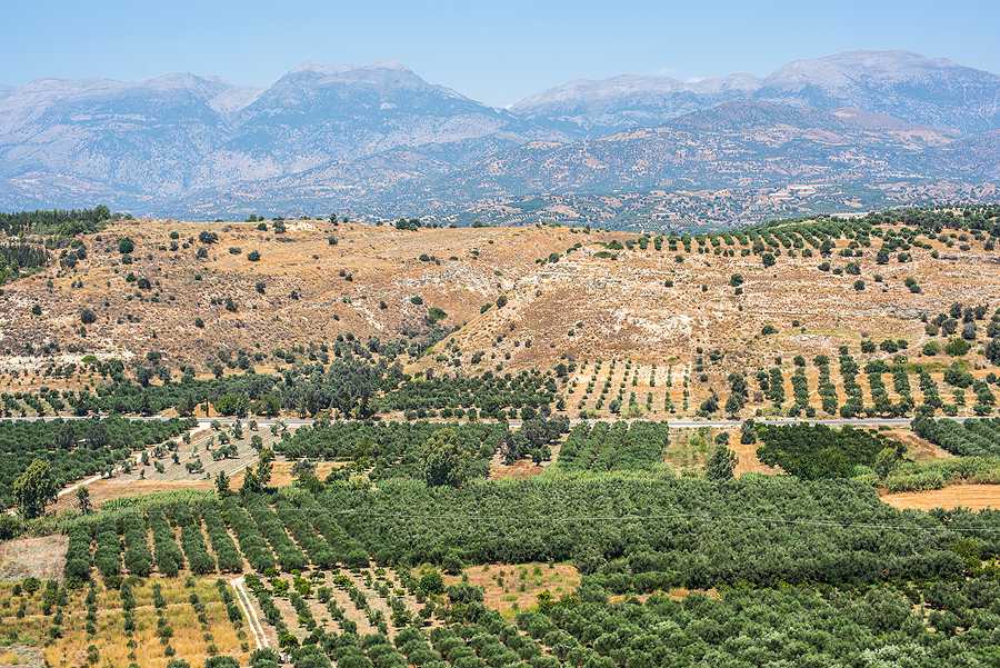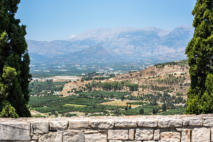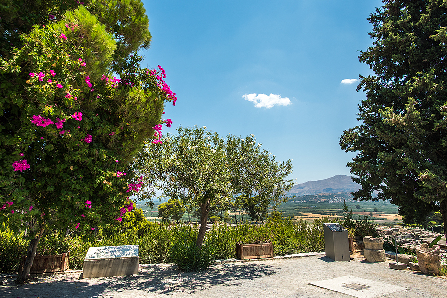 Nuo Festos kalvos atsiveria nuostabus vaizdas į Mesaros lygumą, Asterousios ir Psiloričio kalnus.