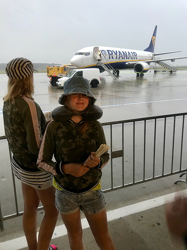 Miegam vos 3 val, tada važiuojam 200km iki oro uosto šalia Miuncheno - iš čia bilietai buvo pigiausi. Oro uostas mažas, priduodam bagažą ir laukiam... knygos, serialai ir žaidimai į trasą. Oras be ryšio, lietus, vargani plius niolika liepos vidury...