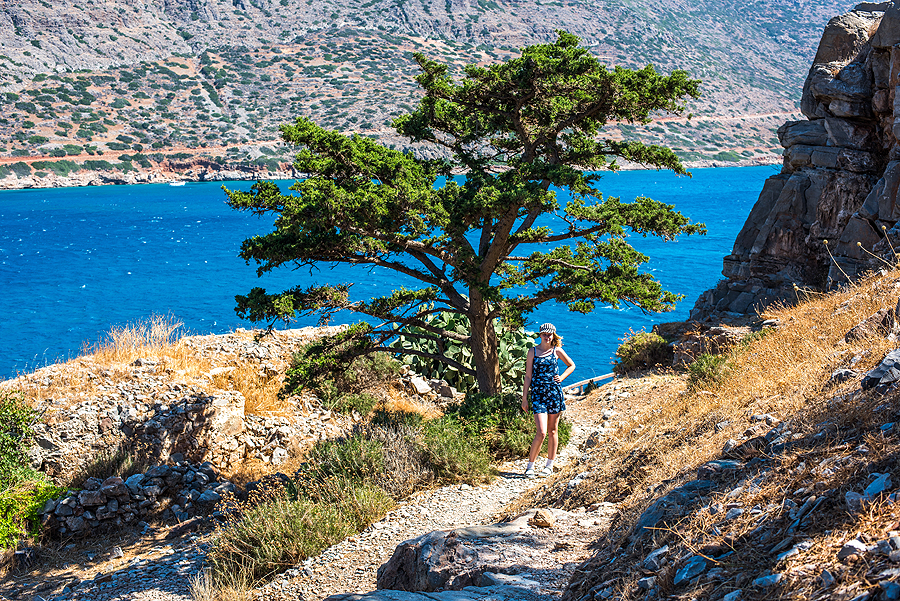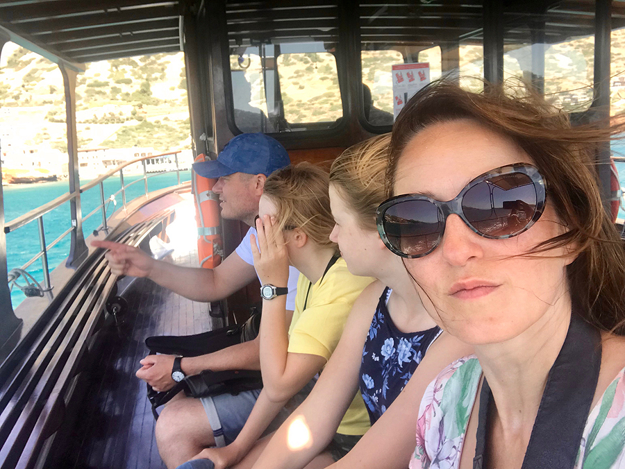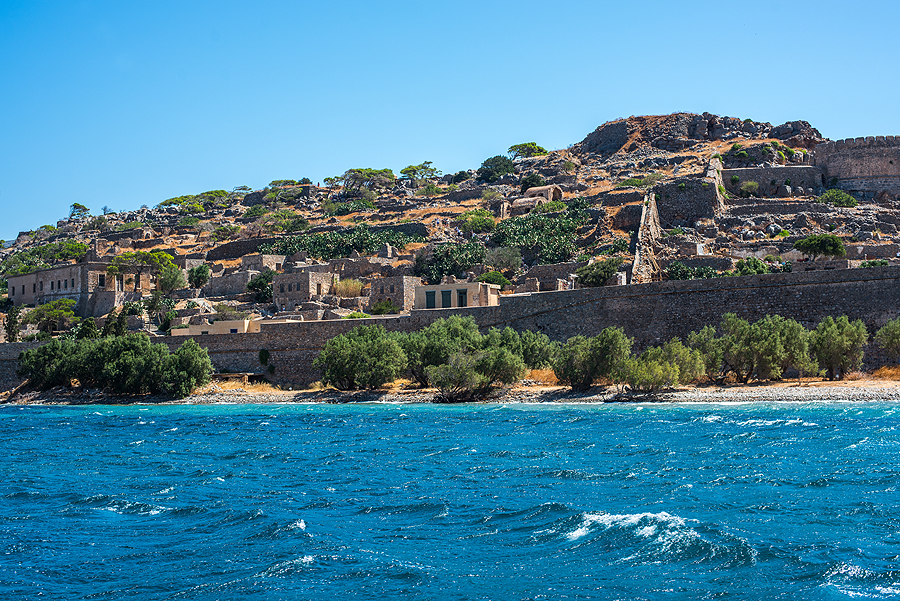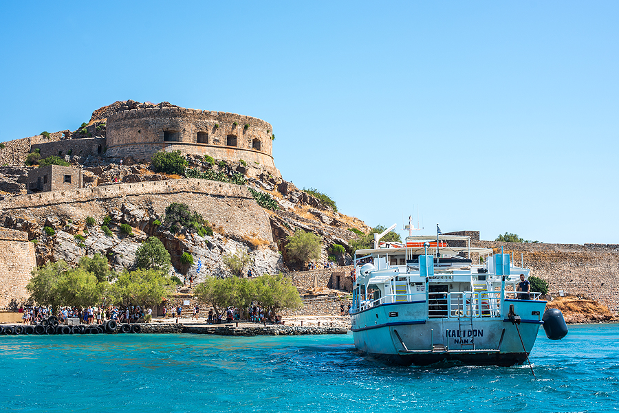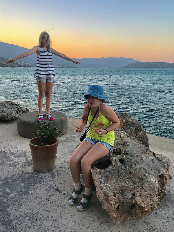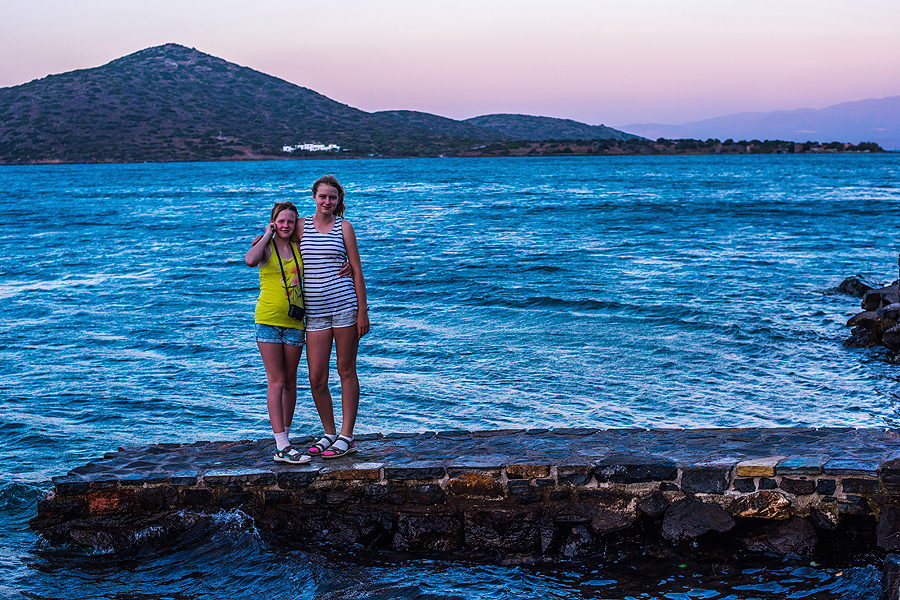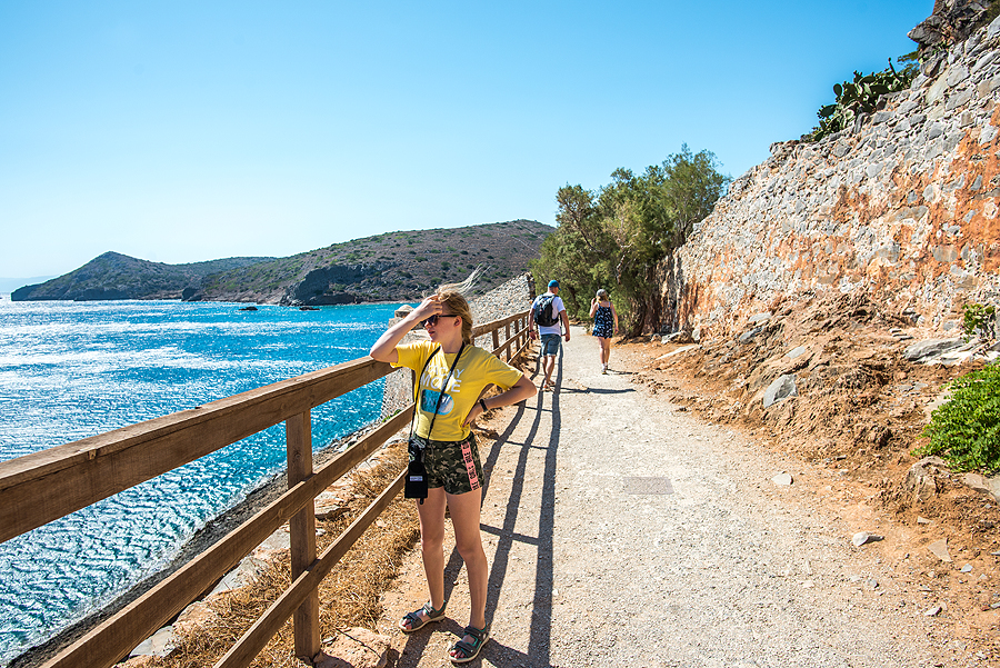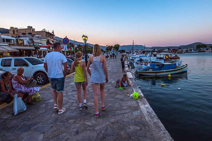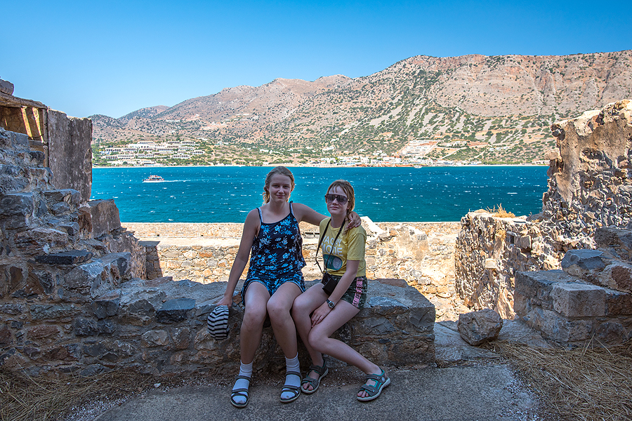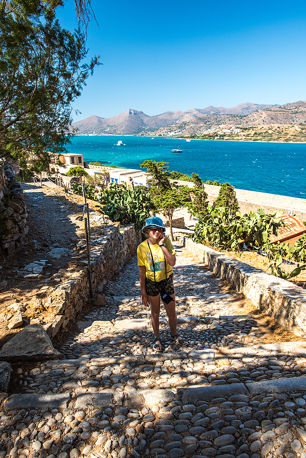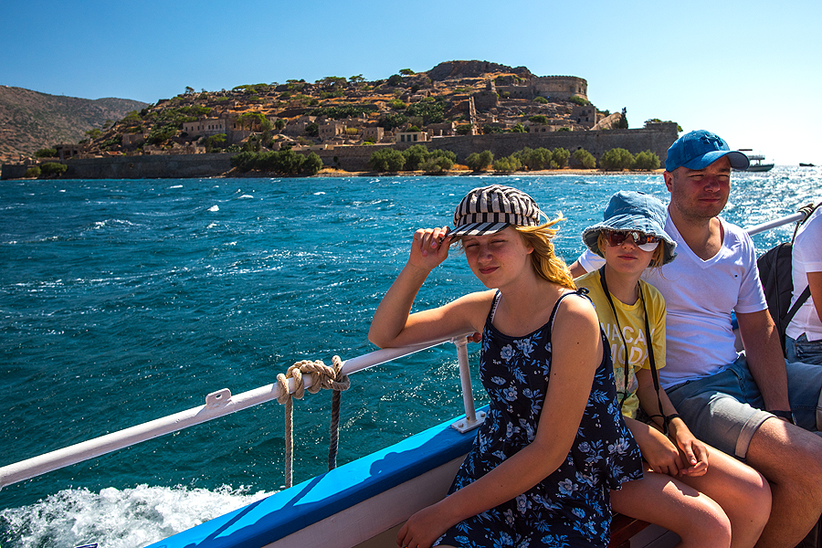 Šiandien tikslas - Spinalongos sala - buvusi raupsuotųjų kolonija. Puse šeimos dar miega, su dičke laukiam kol išsiparps. Pagaliau visiems sukilus nuvažiuojam į Plaka - miestelį iš kurio paprasčiausia nuplaukti į Spinalonga salą. Mokam po 10 eu laivelio viršininkui ir už 10 min esam vietoje.