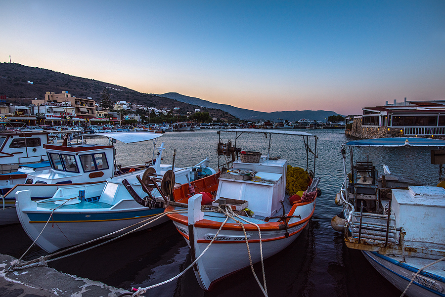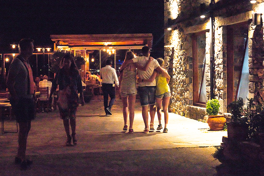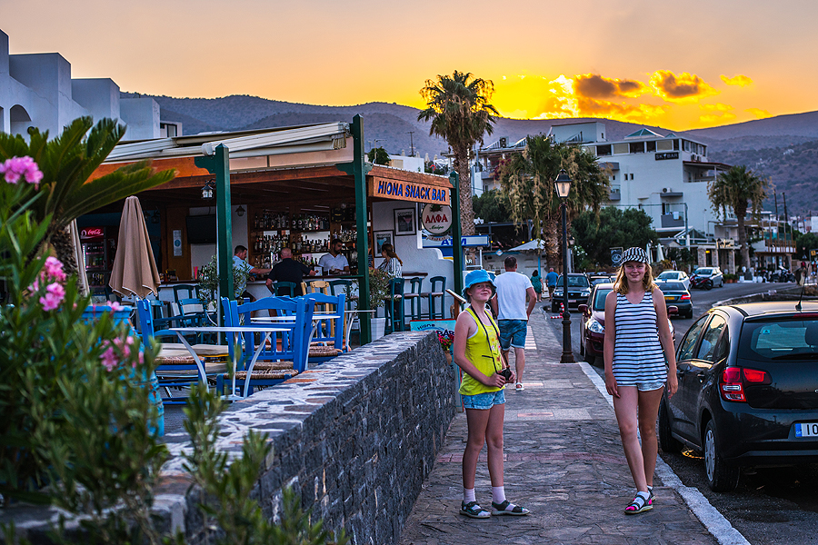 Atvažiavom į viešbutį 16.30(paprastas, vienai nakčiai ir NET BE BASEINO), krentam su vyru iki 19.30 miegot. Jaunoji karta didvyriškai stumia laiką prie planšečių. Tada išsivyniojam apsižiūrėt. Elounda pilna barų ir žvejų laivų. Saulė nusileidus, gaudau tik jos atspindžius.