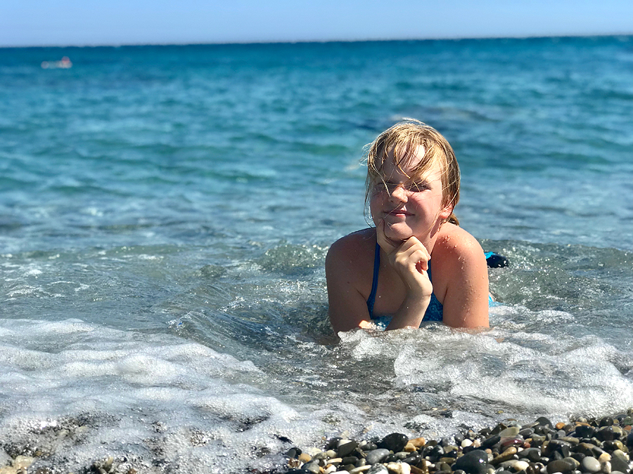 Įlendam pabraidžiot, vanduo šiltas, mažė, kaip visada kelionės pradžioje užsiima fotografija - paskui fotiką meta į šoną.