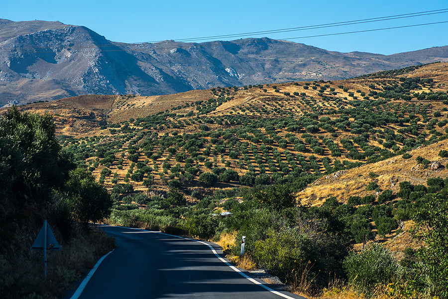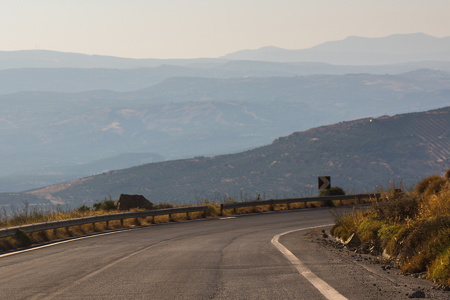 Kalnai pliki išdegę arba apžėlę alyvuogių giraitėm, banguoja prieš akis, šmėkščioja maži kaimukai, aš sužavėta. Super skylinio kaimo degalinės darbuotoja kalba angliškai - vyras sužavėtas ir vis sako - man nieko daugiau nereiktų, galėčiau šitam miestely atostogaut, tik jūra, koks bariukas ir patogi lova. Man dar baseino reik.