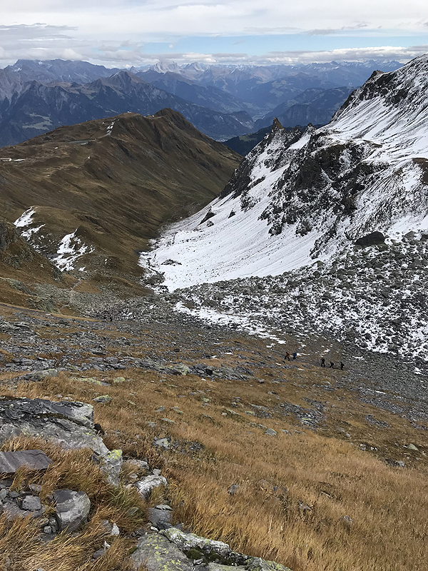 Buvo verta kopti - nuostabus Wildseluggen ežeriukas (2493m). Kelias link Wildseelugen buvo tarpais ir snieguotas, siauras, status, tarpais vien akmenų krūvos, nemaža atkarpa ypač stati - buvo ir nelengva, o tai reiškia, kad įstrigo atmintyje dar labiau ir bus ką atsiminti! :) virš valandos kelio į vieną pusę atsipirko puikiais vaizdais į gražų ežeriuką snieguotų kalnų fone - buvo verta! Tos snieguotos viršūnės keri, o dar pakeliui visur matyti sniego patrankos - bandai įžvelgti slidinėjimo trasas, o vyrukai jau klibina patrankas - ruošia sezonui, jis jau visai už kelių dienų