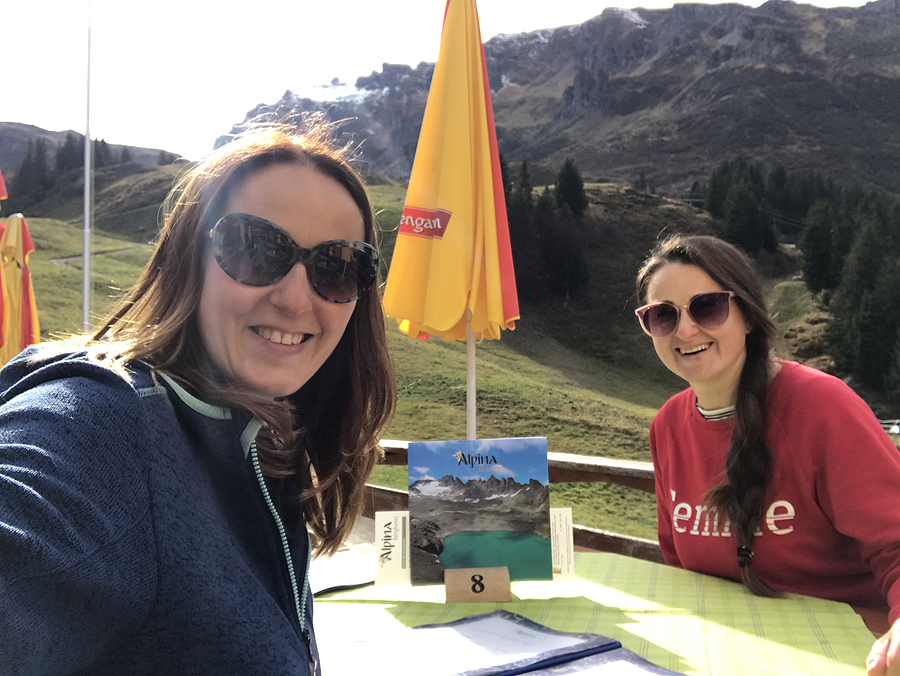 Ketvirtadienio vakare lekiu į oro uostą pasitikti sesės, ji išlipa su mano drauge Justina iš lėktuvo, pasirodo skrido kartu! Gerai, kokią kitą kelionę, kur minsim visos panos, jos jau bus pažįstamos. Tempiamės abi su visu lagaminu į Ciuricho centrą, į fainą kavinukę 5 aukšte su terasa madingoje Bahnhofstrasse. Šiaip ne taip įsitaisom lauke prie gero staliuko tarp žmonių, nuobodžiaujančių prie tuščių kavos ar vyno taurių.