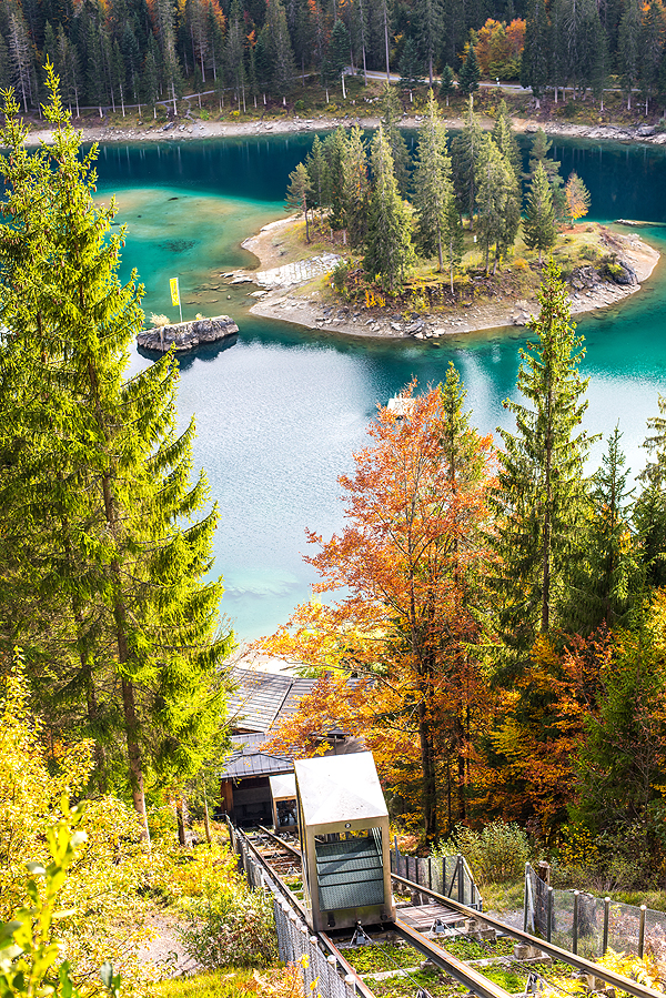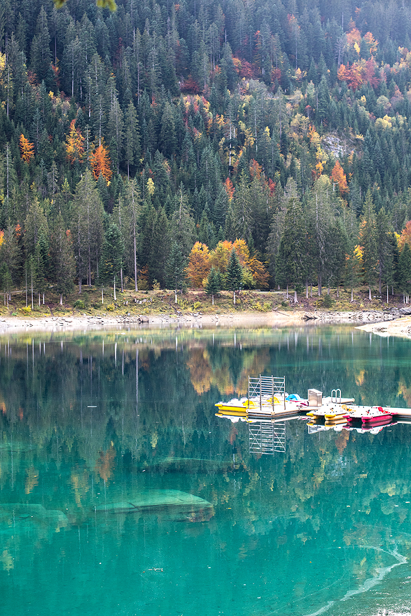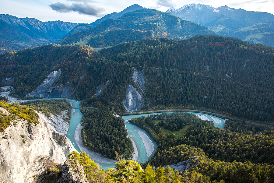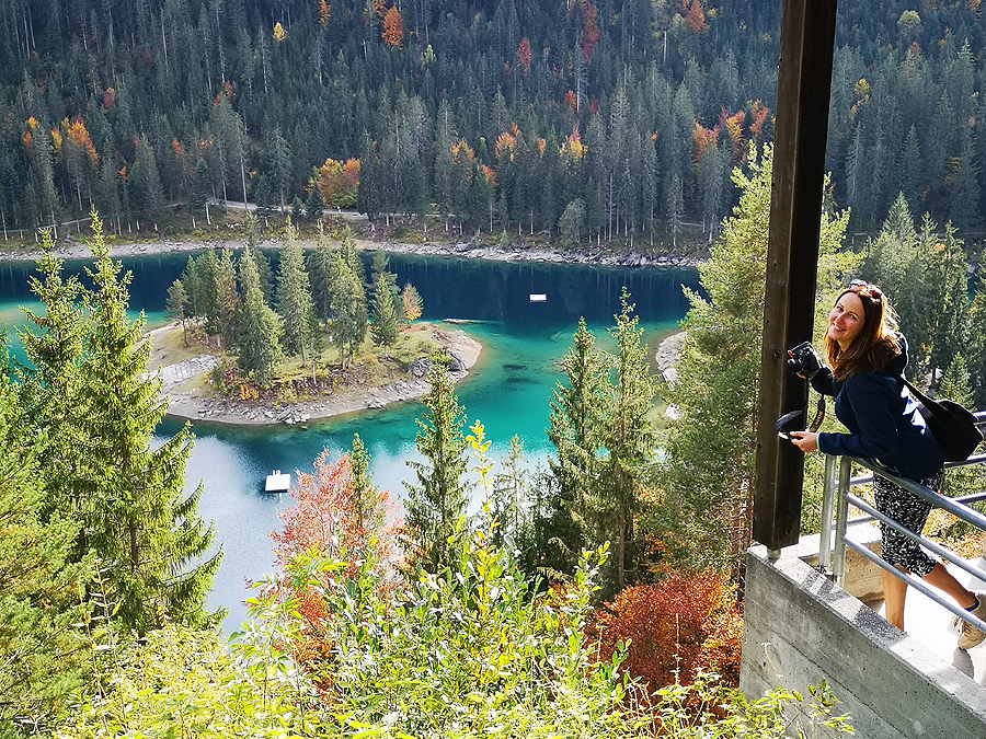 Į Flims atvažiavom pažiūrėti upės vingio, bet man bene labiau patiko žalia Caumasee ežeriuko spalva, derinti su medžių masyvu aplink ir vienu kitu rudenėjančiais lapuočiais, užburiantis vaizdas! Upės vingis irgi puikus, bet gal pritrūko saulės, kuri būtų nušvietusi visą upės žalią ryškią spalvą, na reikės grįžti kitą kartą - šitas kelias puikiai tinka eiti ir su vaikais, ir tėtei puikiai tiktų - mielas pasivaikščiojimas be ypatingai stačių įkalnių nuokalnių, toks sakėm lietuviškas jaukus miškas su ne lietuviškais kalnų ežeriuku ir upe. O dar mačiau, kad yra vaikams pramogų, pvz. eiti kalno kraštu prisisegus diržais, prisėdus nuleisti kojas į bedugnę - milžinišką skardį! Jau net nešneku apie šveicarų kiekvienam hiking ar walking kelyje įrengtas superines vaikų aikšteles, o prie Caumasee ežeriuko yra įrengtas ištisas mandras pliažas su dušais, gultais, restoranu, puikiu priėjimu prie vandens. Fainai būtų grįžti su dičkėm! O ir mažutė greitai augs, vis daugiau galės ką nuveikti. Puiki diena, super emocijos ir kompanija, nuostabūs vaizdai! Ir ta Šveicarija vis nenustoja stebinti ir neišsenka tų gražių vietų ką pamatyti.