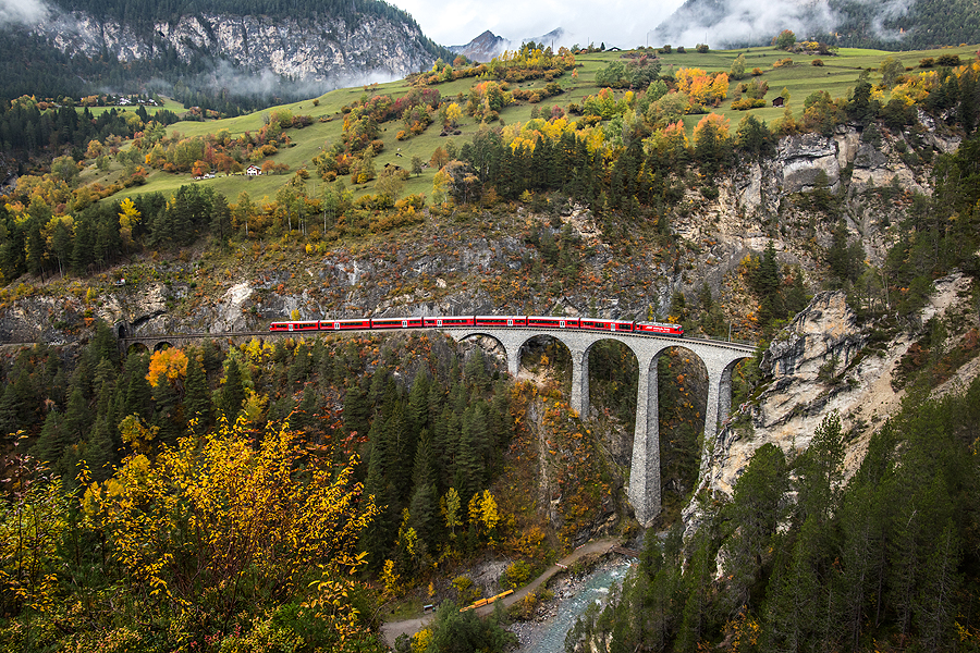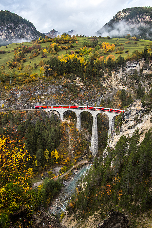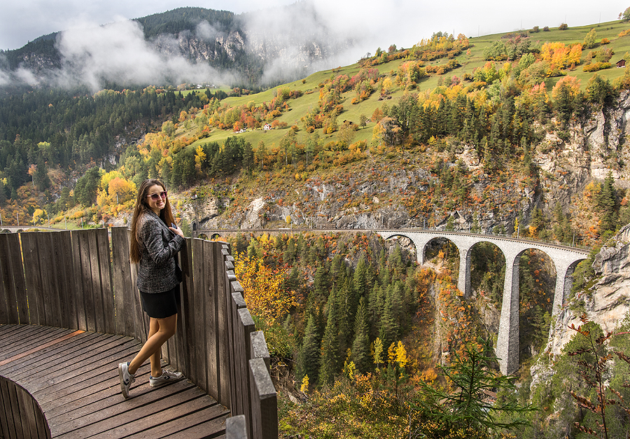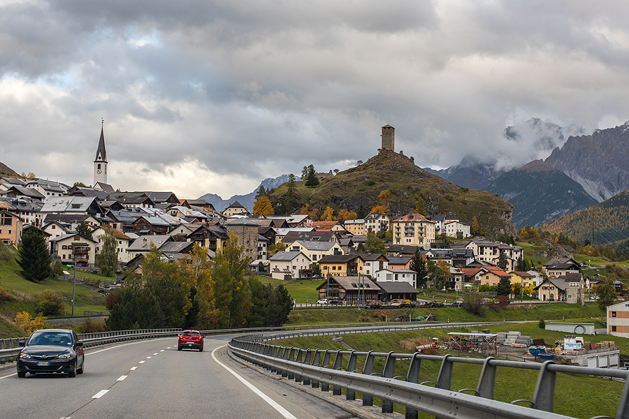 Šeštadienį po pusryčių vėl traukiam į tą pačią pusę - link Graubunden kantono. Orelis nelepina. Pažiūrėjus internete, Graubunden žada normaliausią orą. Tad ten ir minam, oi, ten yra daaaaug ką pamatyti... Tikslas buvo mažas miestukas su pilimi ir SPA baseinu atsipalaidavimui, pakeliui Landwasser viadukas Filisur miestuke, galbūt net populiariausias Šveicarijos kalnų kurortas Sankt Moritz - pasilikome viską savieigai, kas pasirodė labai protingas sprendimas.